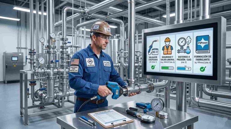 Las certificaciones para instaladores de tubería industrial son fundamentales cuando el sistema depende de la habilidad del soldador y del cumplimiento de códigos estrictos.
